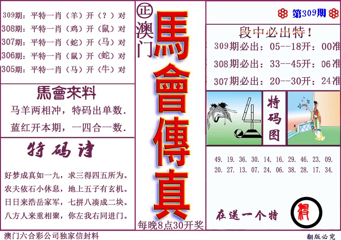 309期会传真:〖开?00〗 马羊两相冲,特码出单数。蓝红开本期,一四合一数。 解析:诗句解马羊蛇虎 综合特肖:虎牛马鸡鼠蛇猴羊 综合六肖:虎牛马鸡鼠蛇 主推特码:28 16 05 41 24 48 09 33 18 30 |